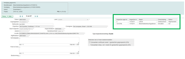 Heeft u een inspectie aangevraagd? Dan is vanaf nu in het scherm van een Full+ exportzending nieuwe informatie beschikbaar. U ziet rechtsbovenin een blok, waarin staat welke inspectie(s) gekoppeld zijn aan deze exportzending.