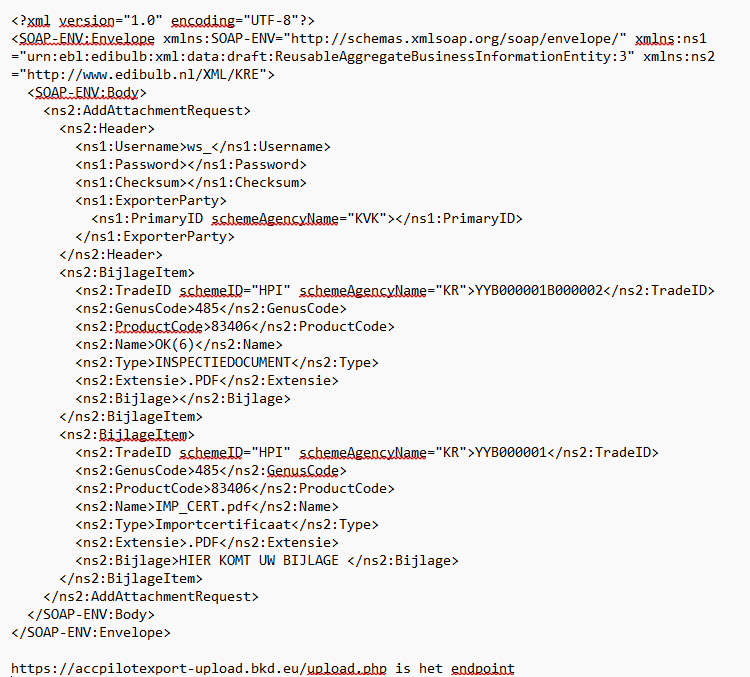 U hoeft de bijlages niet zelf te bouwen, maar ze moeten wel in Ketenregister staan. Er is een apart bericht ontwikkeld, om een scan van het importcertificaat te koppelen aan de HPI in Ketenregister. In overleg met de NVWA wordt op dit moment alleen pdf als bijlage ondersteund. Het koppelen van de scan is niet bedoeld voor het pre-exportcertificaat bij herkomst EU. Is een scan gekoppeld dan ziet u het kenmerk “Importdocument” bij de HPI in KR staan.